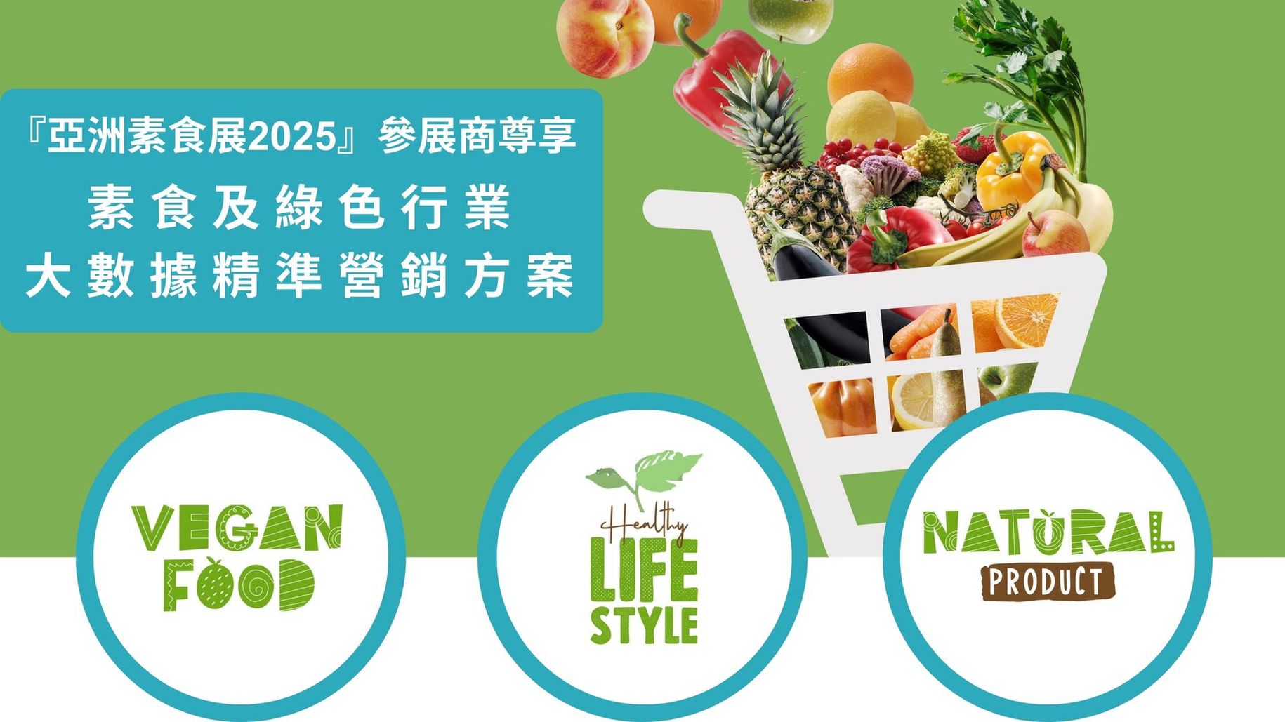 為協助各參展商進一步推廣品牌,「亞洲素食展2025」官方支持機構 HKT旗下的香港黃頁特別推出「素食及綠色行業 : 大數據精準營銷方案」,利用大數據瞄準對素食及綠色產品有興趣的客戶,例如關注健康或曾參觀相關展覽的人士,透過不同平台更有效地宣傳你的產品。
